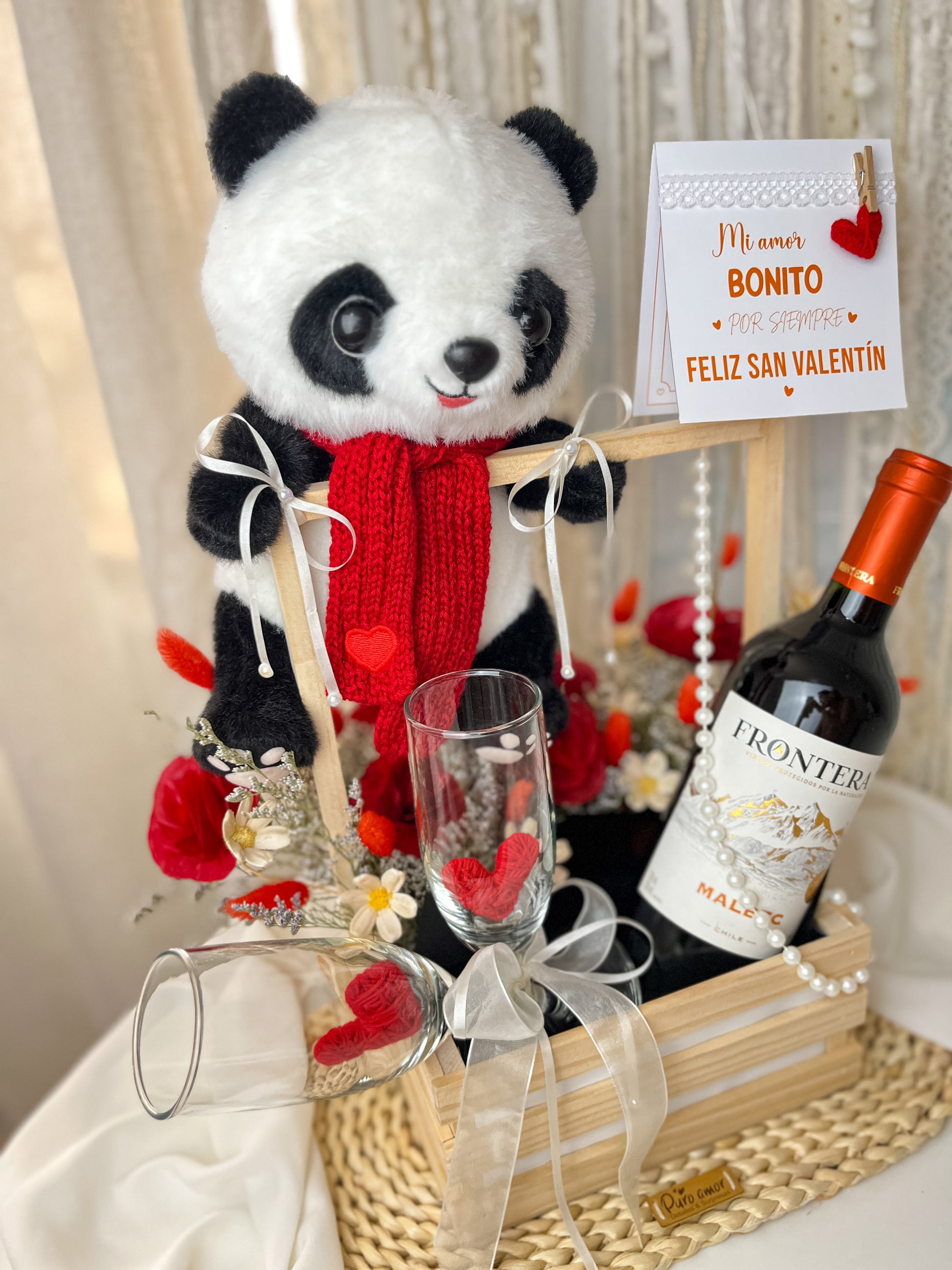 diseño exclusivo de Puro Amor con un tierno y hermoso peluche con flores eternas que te acompañarán esa noche de celebración y amor 🥂❤️