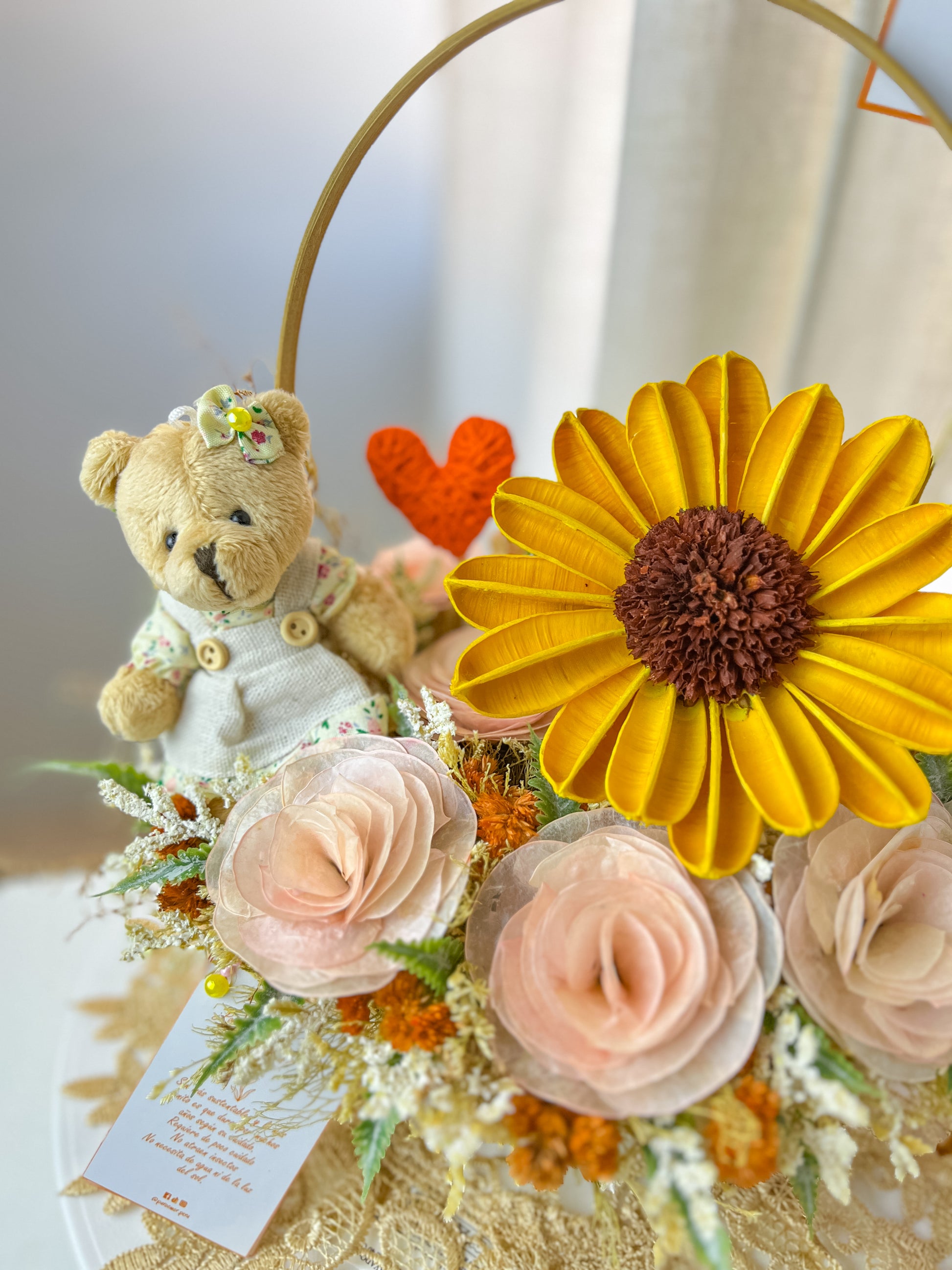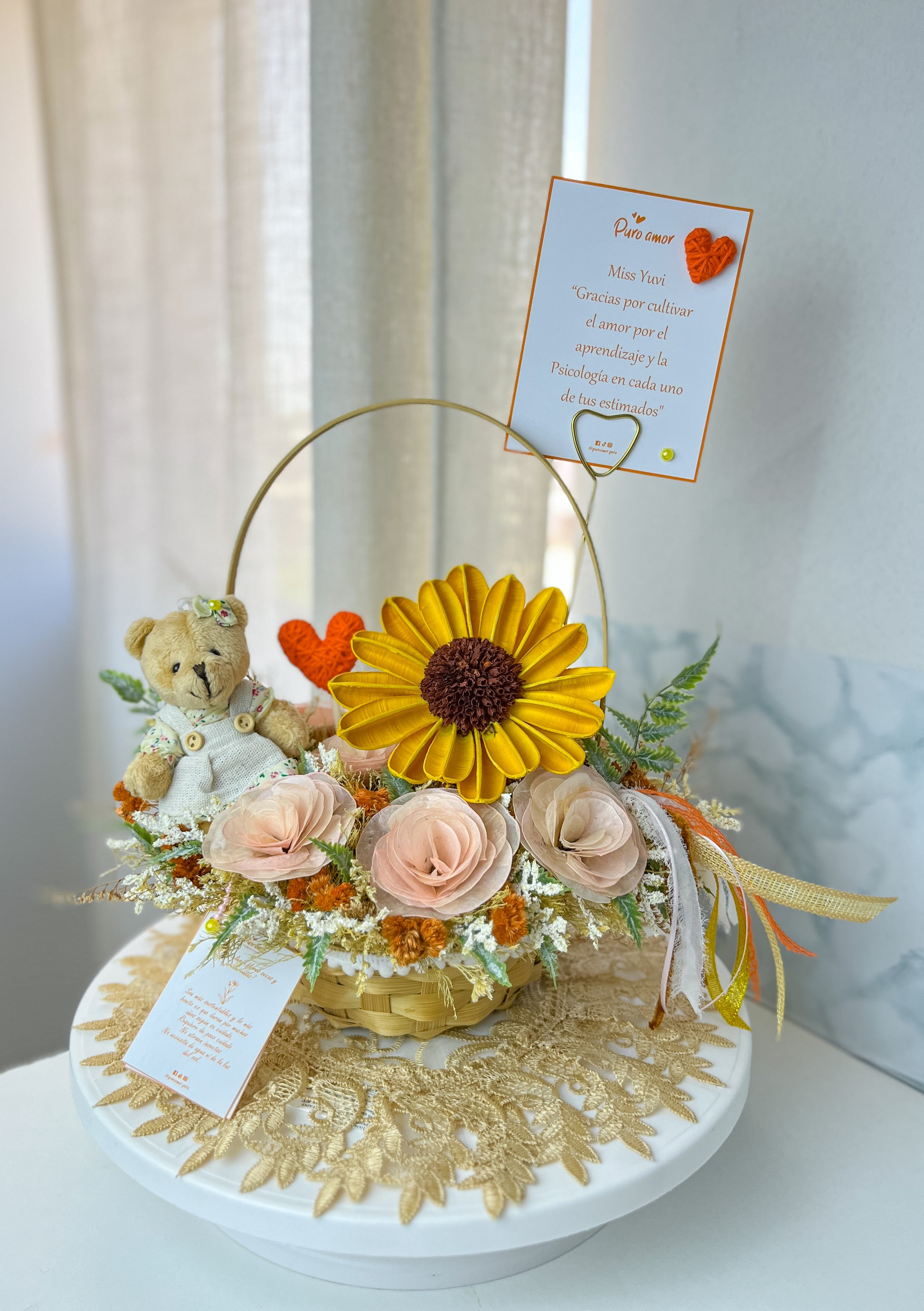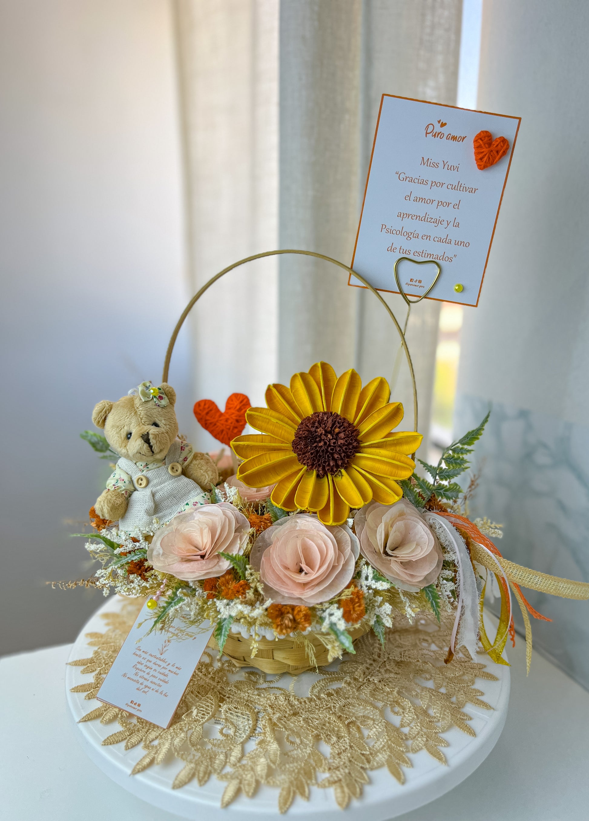 - Incluye: peluche mini y tarjeta de dedicatoria + topper corazón