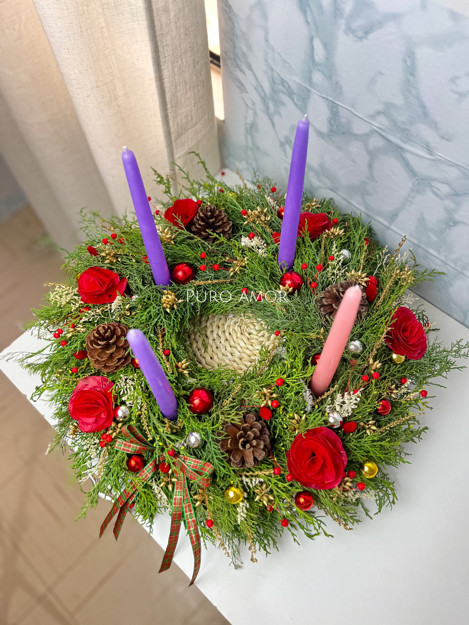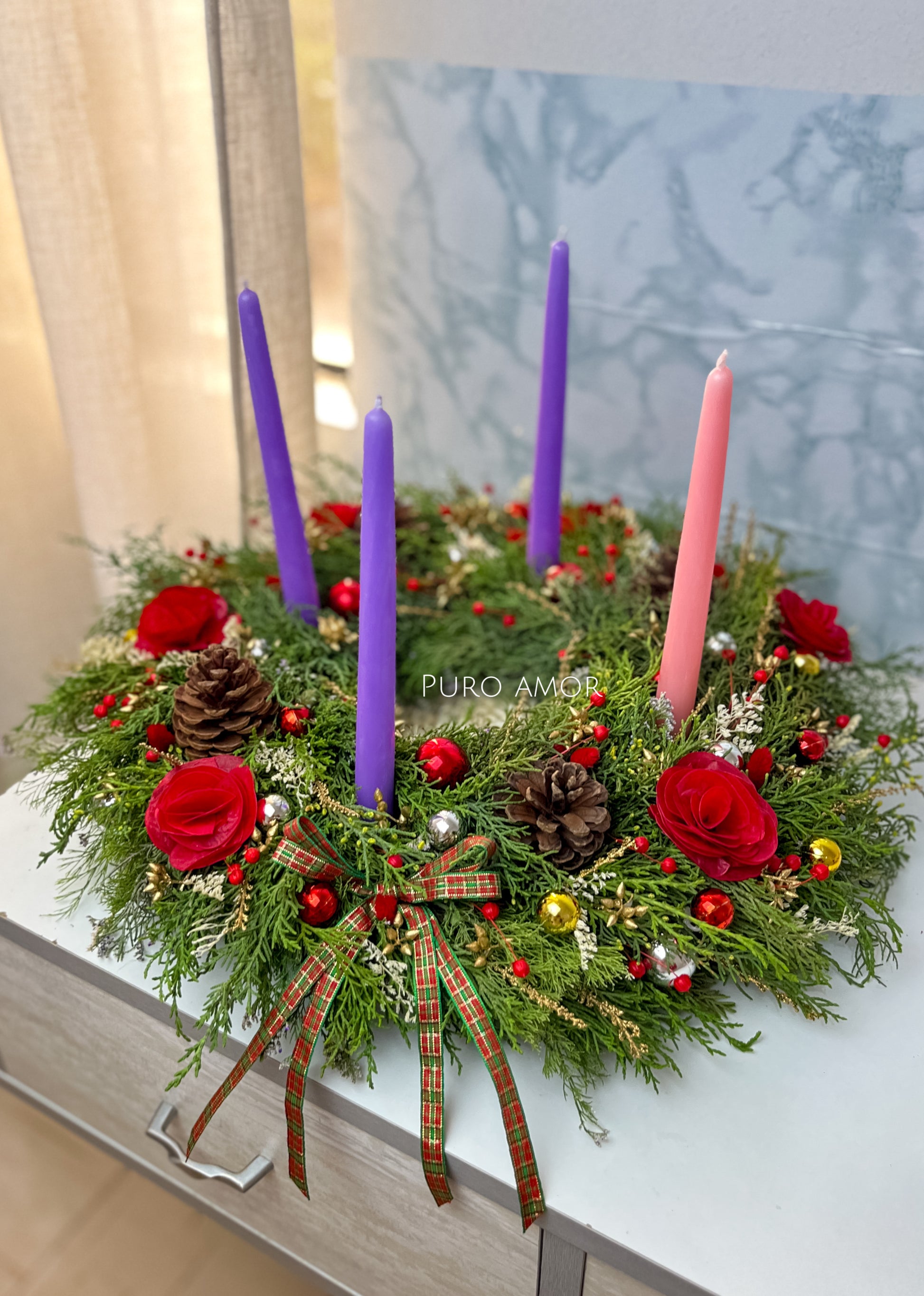 Corona diseñado cuidadosamente con piecitas que representan a las tonalidades navideñas tradicionales ✨
