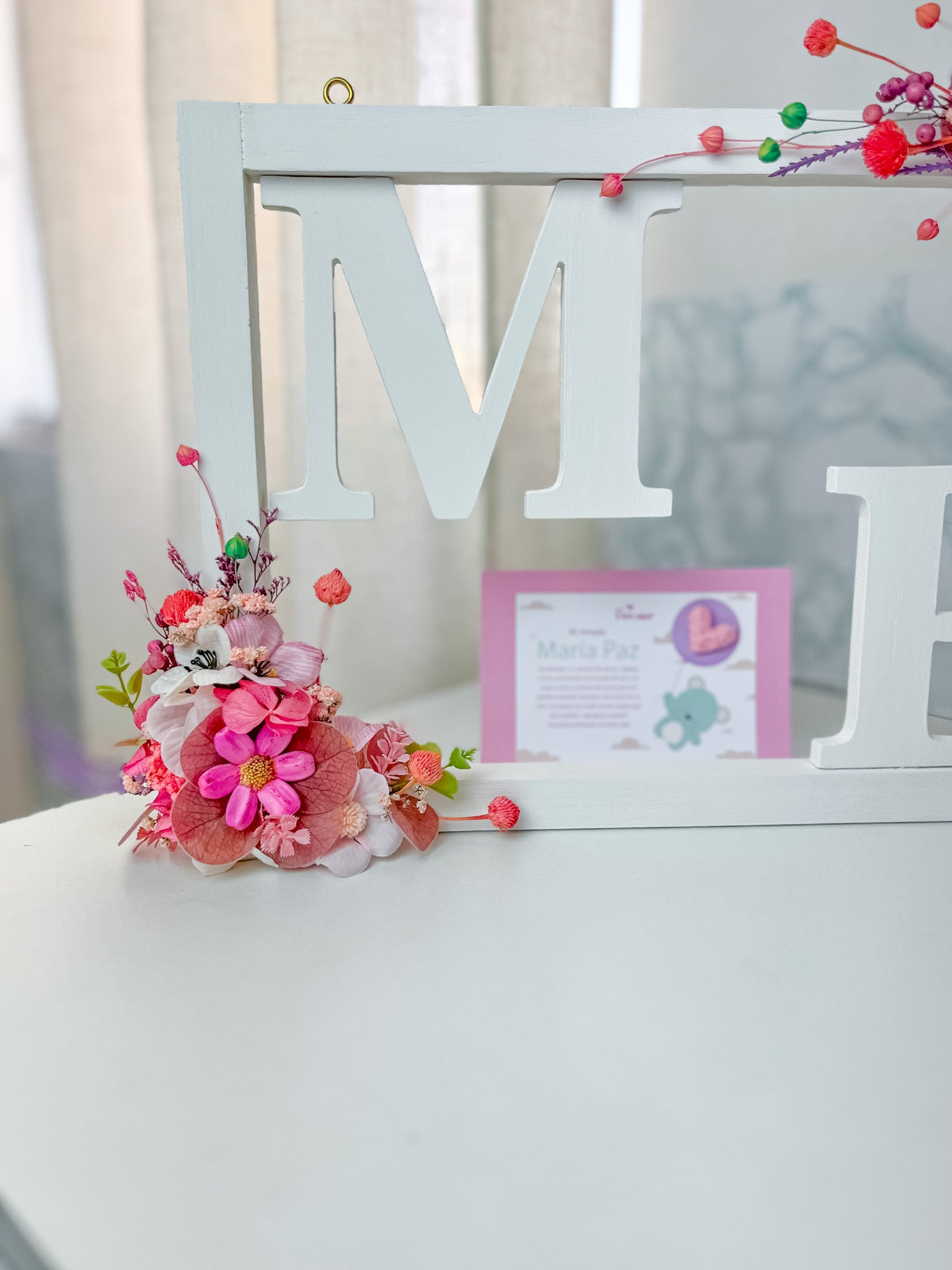 Cuadro minimalista con letras y flores