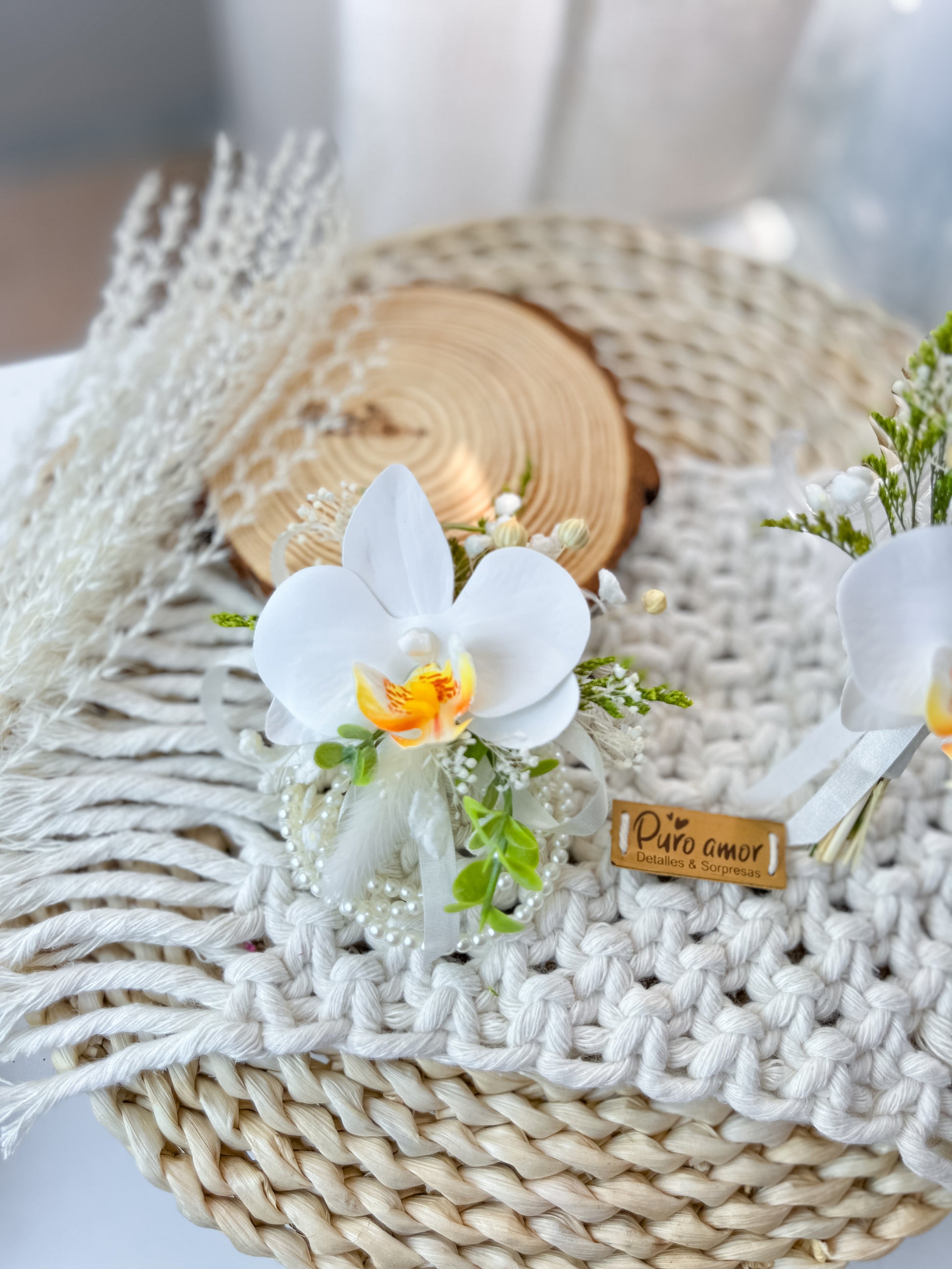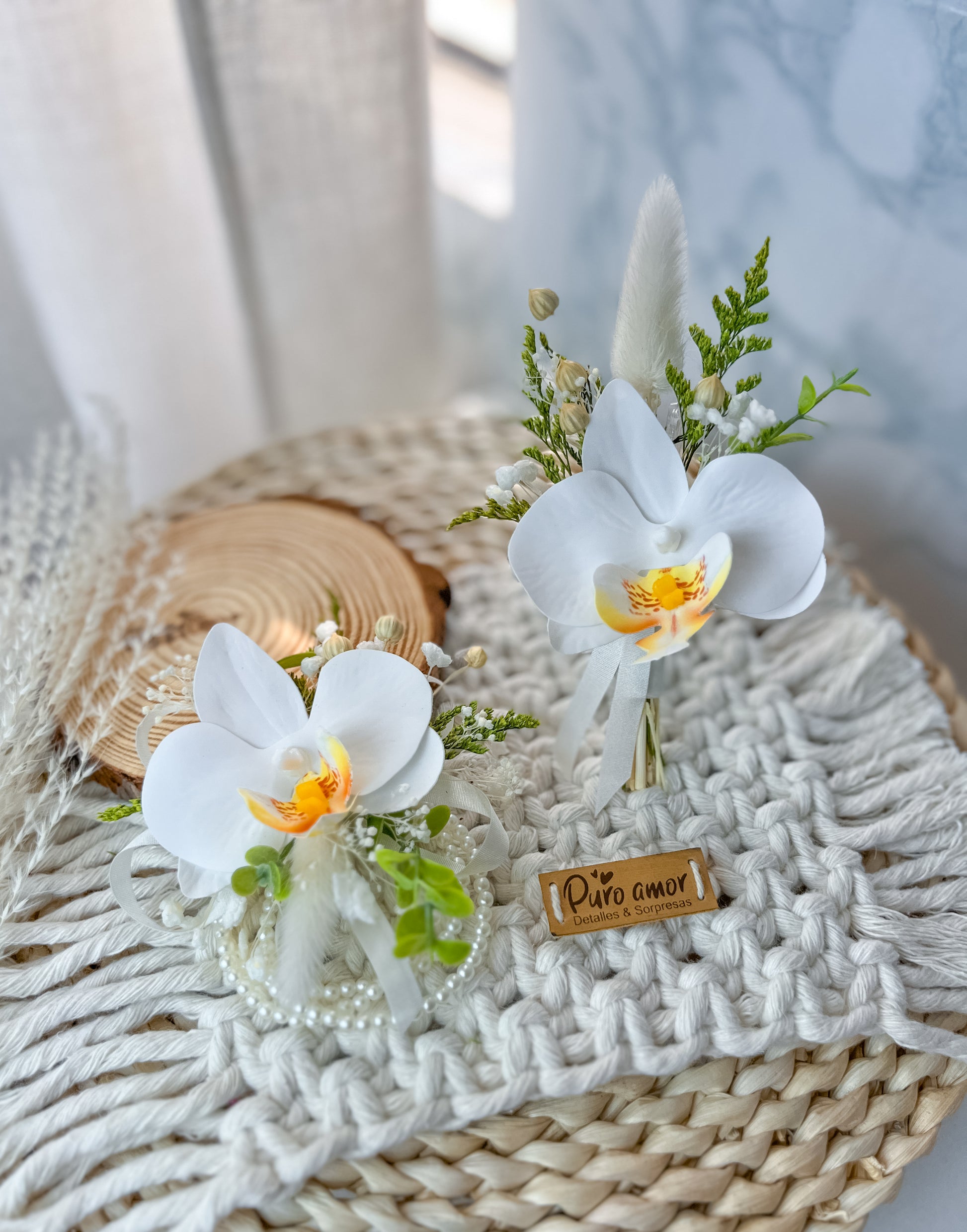- Orquídeas realistas que va acompañado de flores preservadas.