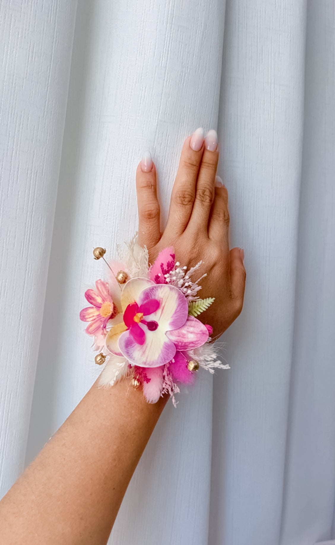 - Orquídeas realistas que va acompañado de flores preservadas.