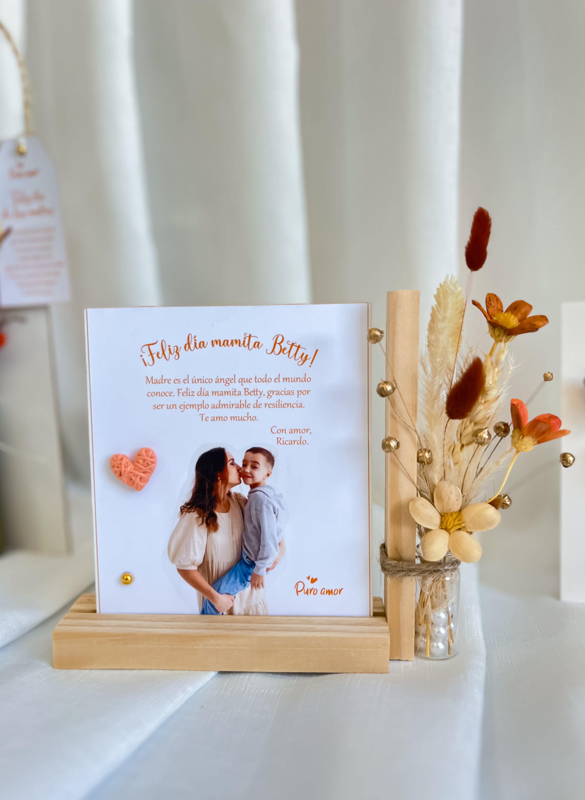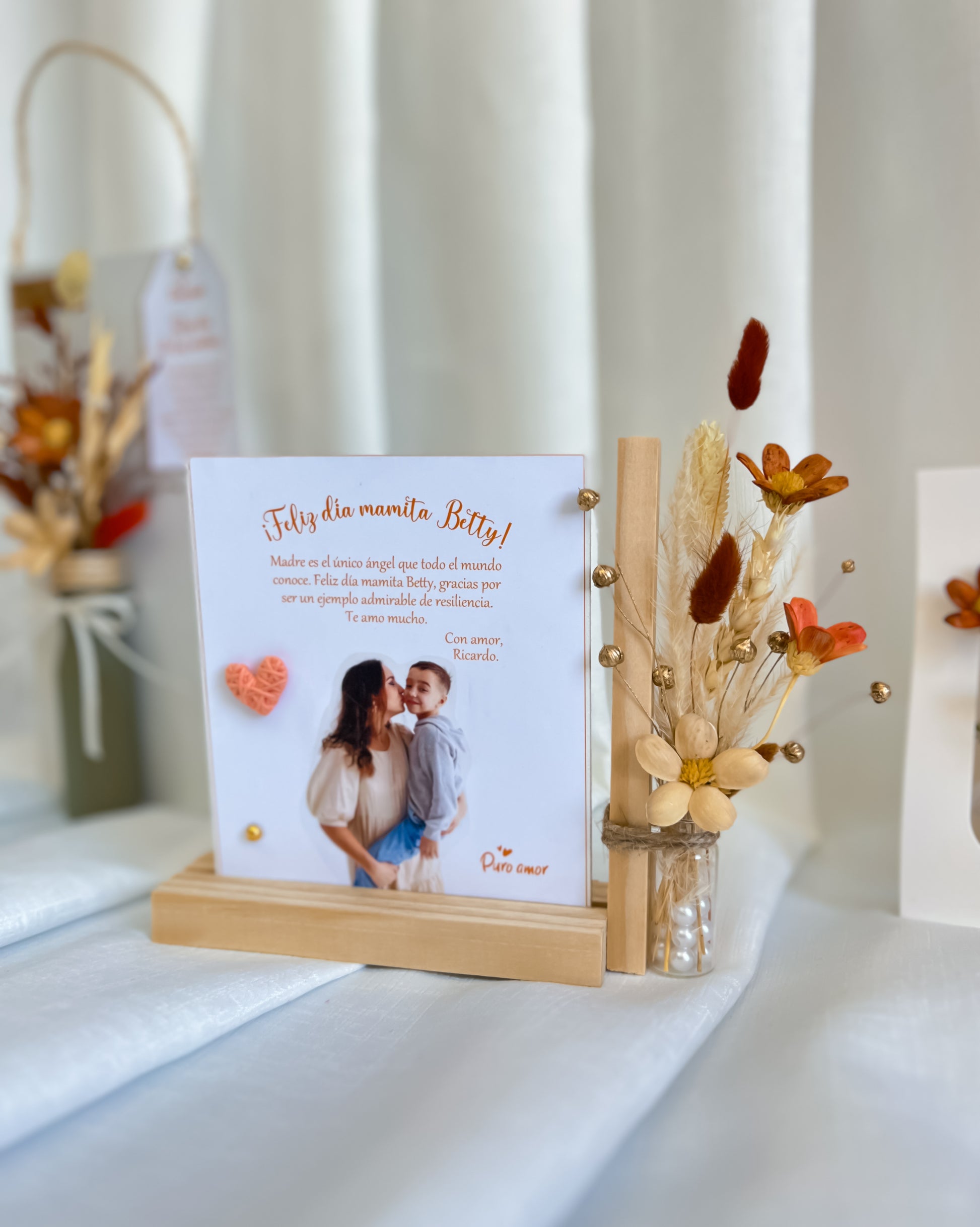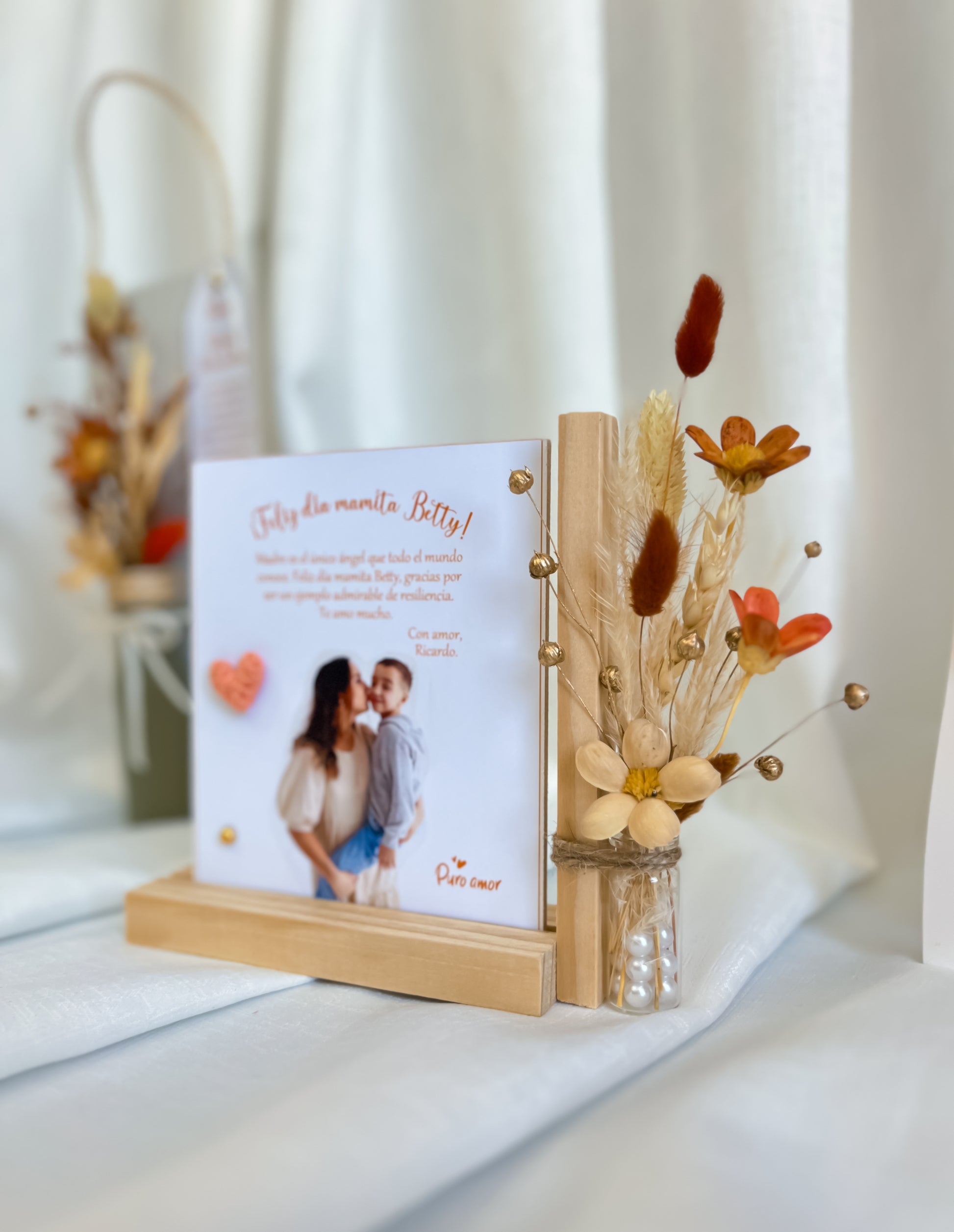 Porta foto con flores naturales eternas