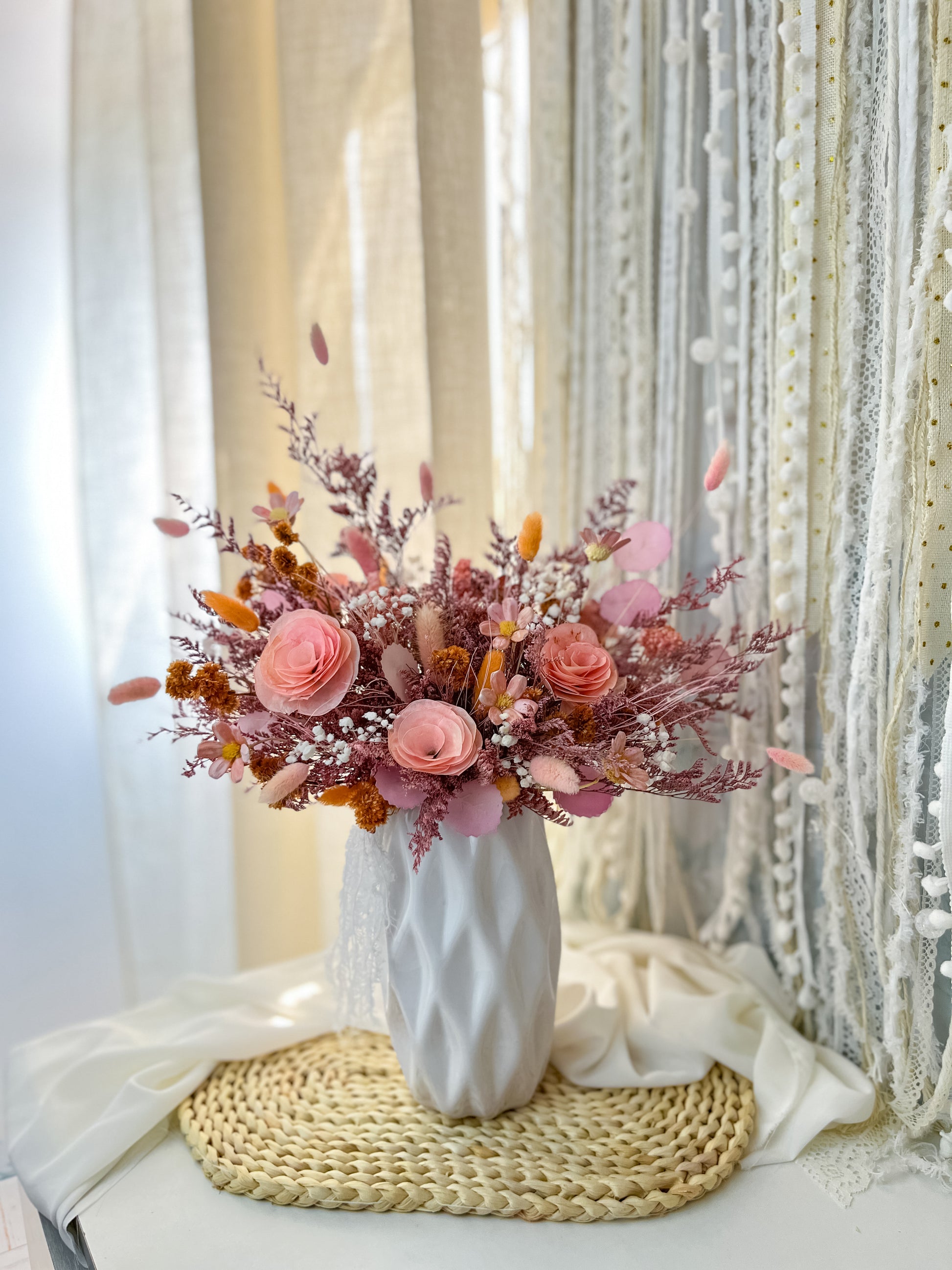 Ramo hermoso diseñado con flores naturales que pasaron por un proceso de secado y preservado para que te dure por muchos años 💕
